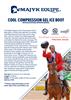 The Majyk Equipe Cool/Compression Boot gives a whole new approach to cooling and dispersing heat from your horses' legs after exercise. Made from NASA approved materials, the boot extends above the knee and below fetlock for extra coverage. The long lasting cooling gel paired with the power of compression provides the perfect combination of rest and recovery. The easy to operate hand pump with release valve neatly tucks away in the handy mesh pocket keeping it from trailing. The whole boot can be placed in the freezer compartment or you can cool just the liners in freezer or ice chest for 3-4 hours prior to use. The gel liner becomes ice cold while staying malleable and comfortable as it wraps around the leg. Pump 18-20 times and measure the pressure by inserting finger between gel liner and the leg. Depress button on pump to release pressure. Can be used with or without compression. Non neoprene construction helps protect against mold and fungus growth. Note: Depress air out of boot fully before freezing.